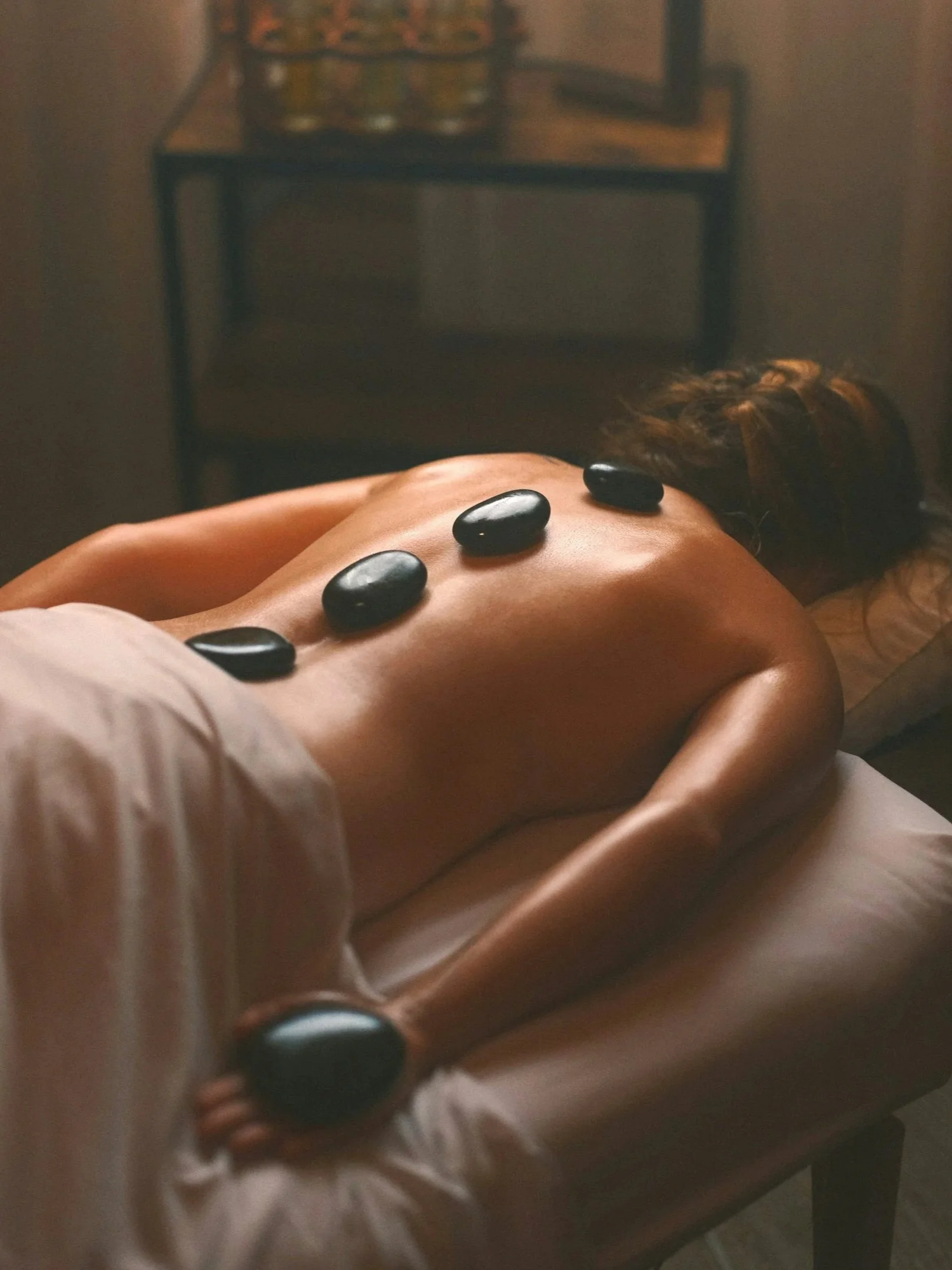 6 hot stones incorporated into your massage, in the area you need muscle tension relief the most.